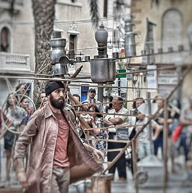 Um espetáculo de rua contemporâneo, cómico e intenso, para todos os públicos. Combina skateboard, malabares, teatro, música e pintura em vivo com um toque extravagante especial. A contemporary street show, comical and intense, for all audiences. It combines Skateboard, juggling, theater, music and live painting with a special extravagant flair.