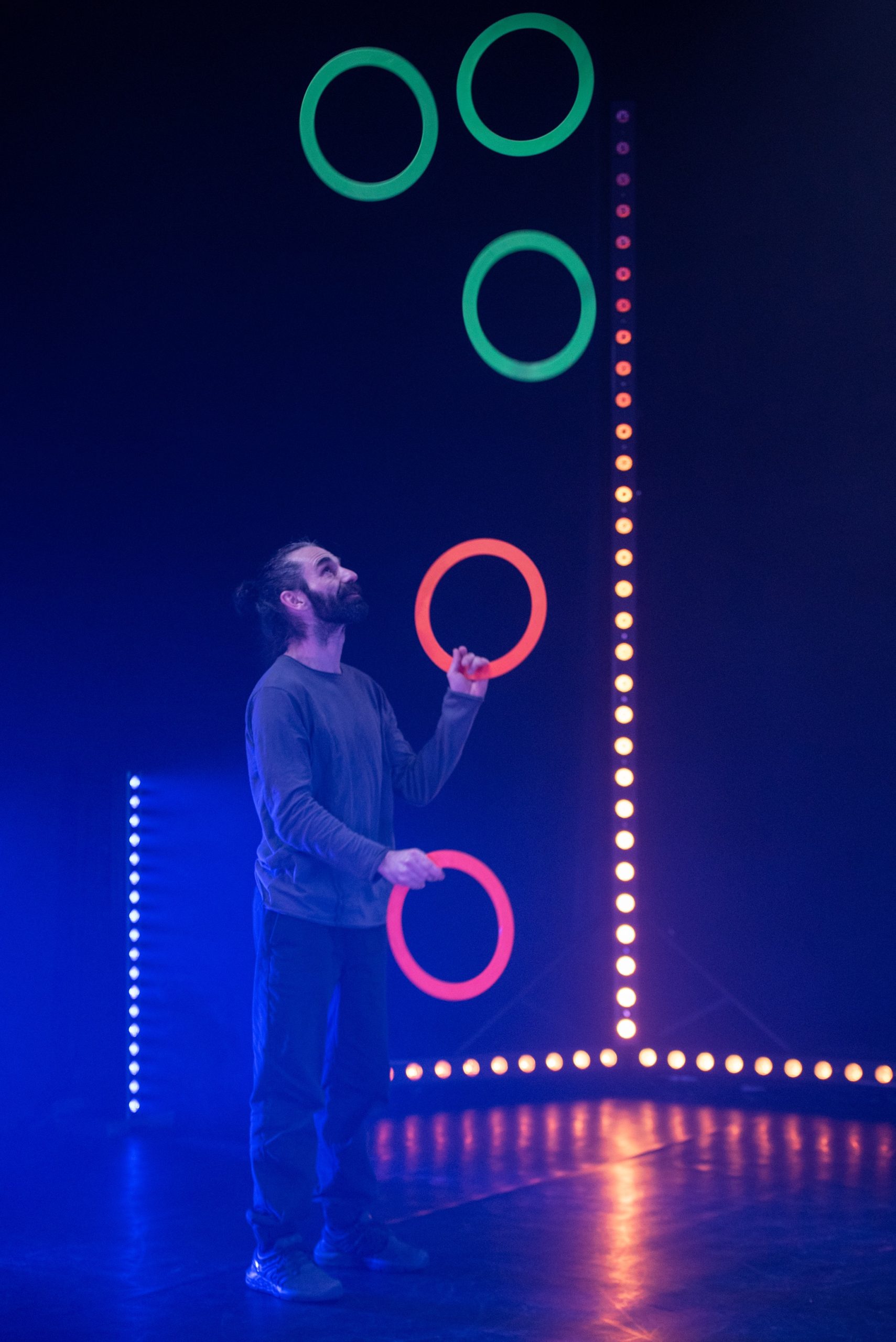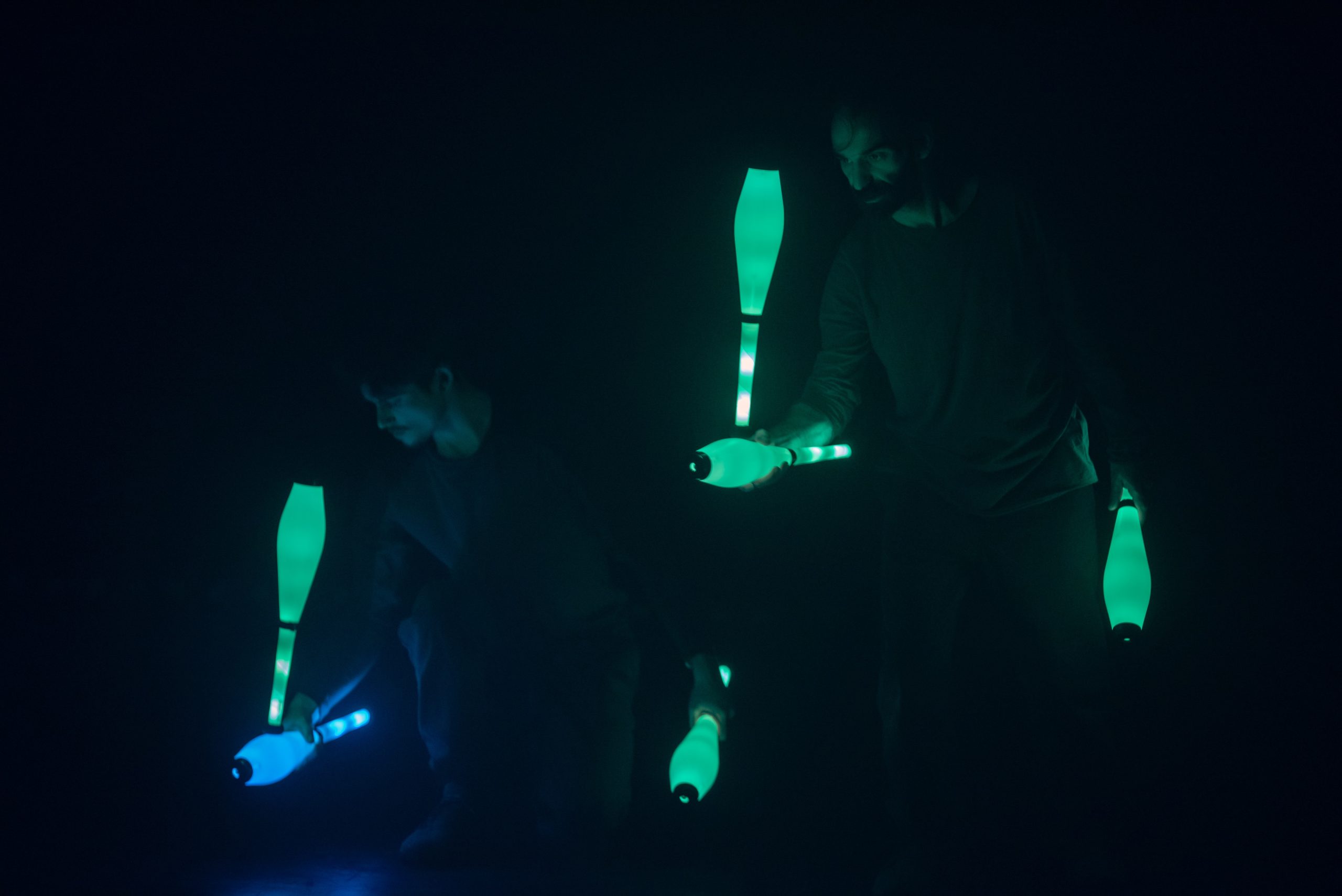 Dois malabaristas colocam-se ao desafio da partilha constante e obrigatória de todos os recursos. Uma investigação sobre as redes, sobre as formas e esquemas da partilha digital. Um estudo sobre a distribuição de objetos entre 2 corpos, passes-receções-partilhas.