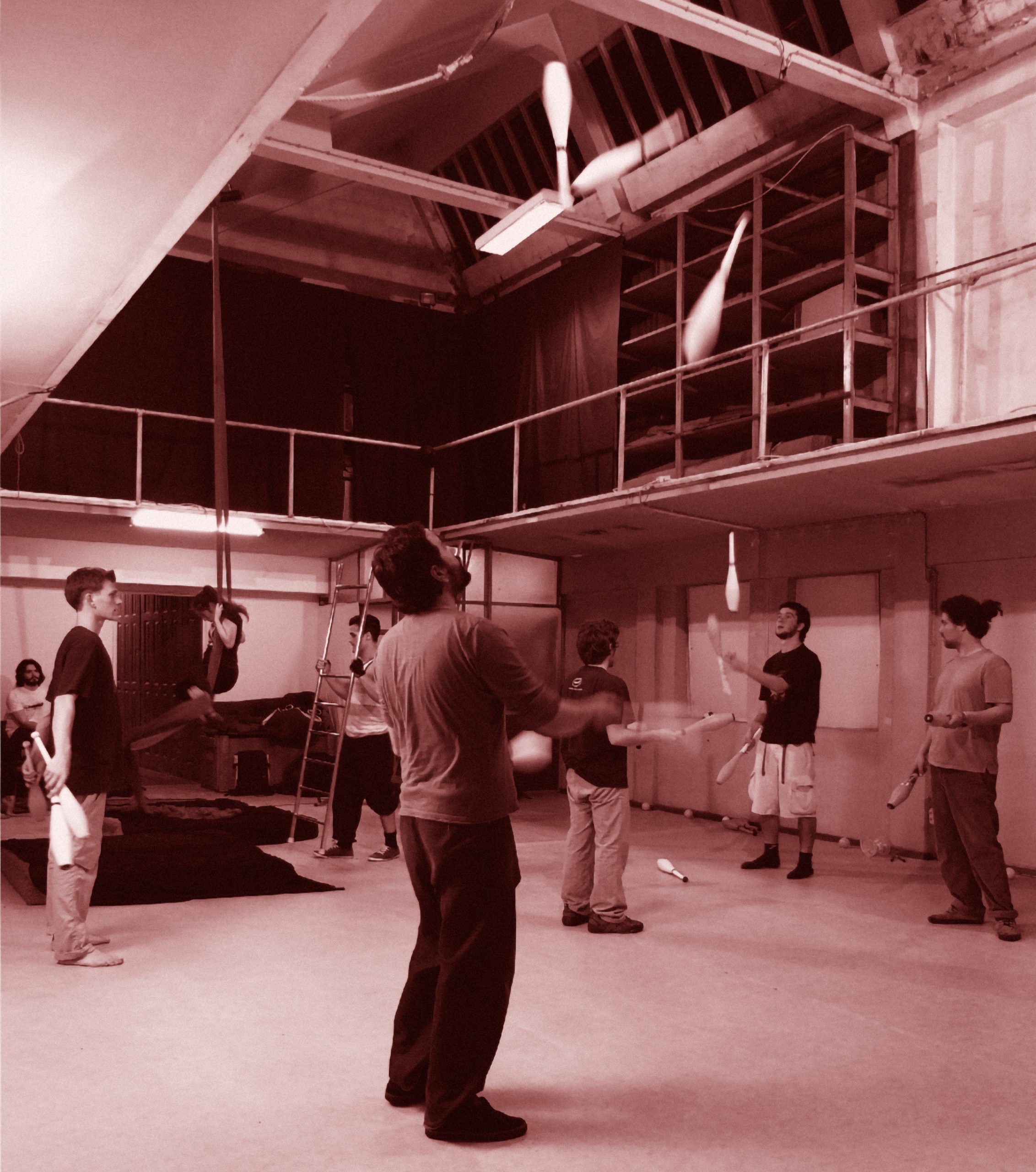 It was founded in 2005 in Porto by former ESMAE students, occupying what became the Fábrica da Rua da Alegria, a space kindly provided by ESMAE/IPP, where it remained until mid-2015. In that year, it became a resident company at Teatro Municipal do Porto through the “Teatro em Campo Aberto” programme, where it benefited from its own facilities until 2022. In 2023, it created Clube Erva Daninha, a space dedicated to hosting contemporary circus projects, which is part of Espaço Agra in the western area of the city of Porto.