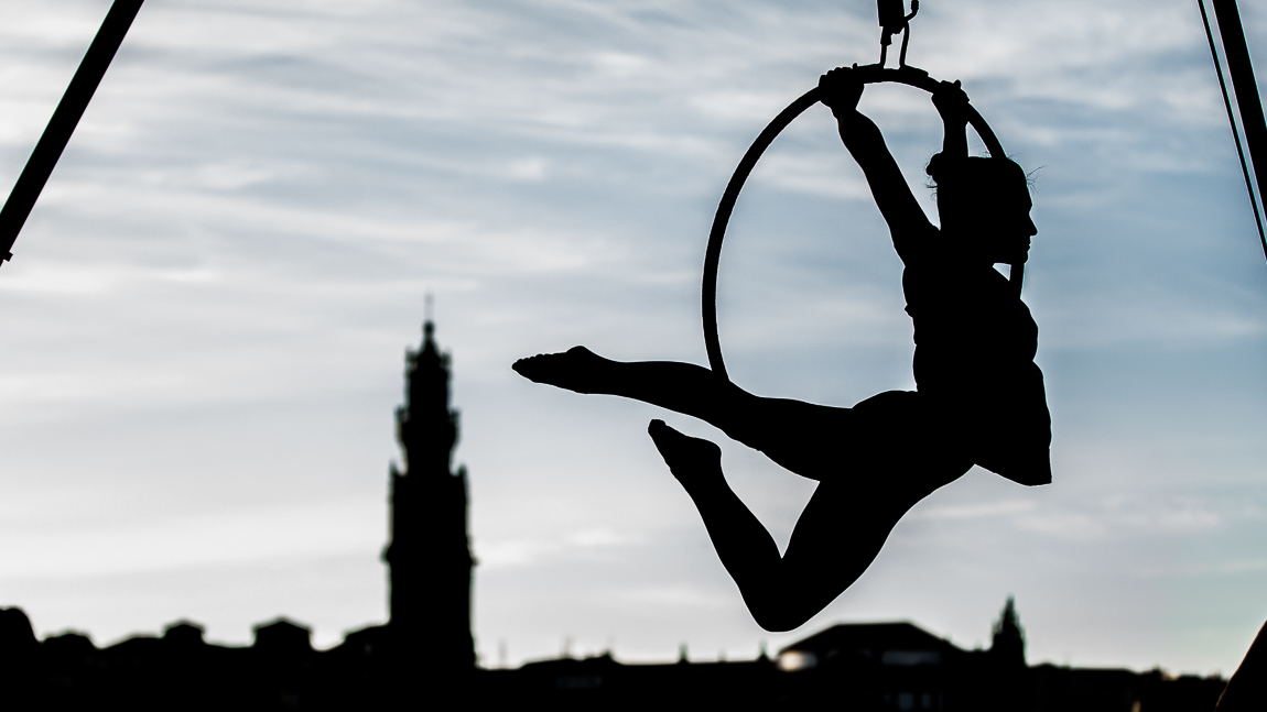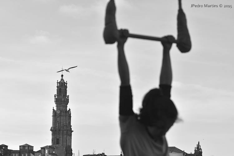 Três mulheres, três ingredientes, três aparelhos de acrobacia aérea numa paisagem icônica do Porto.