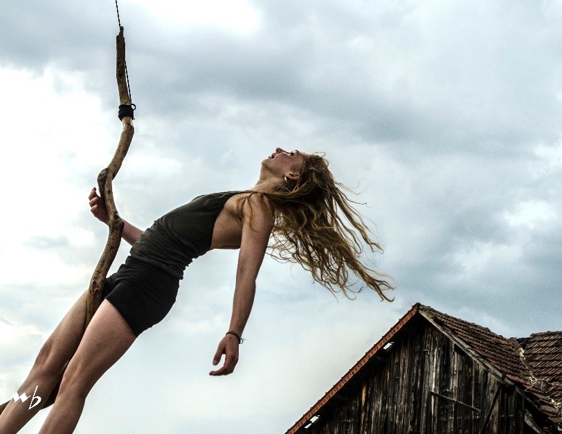 A young woman gradually moves away from the world of reality and enters a forest of mysteries and dreams. Her liana body approaches, insinuates itself, slips into the wood. In this moment of solitude, she does not shut herself away. She takes a step back, a step up too. She gathers her strength and opens wide the windows, the ones that give onto the elsewhere and onto the intimate.This show, between dance and circus, owes its strength to its simplicity and to the authenticity of the gesture. A harmonious and hypnotic body-to-body encounter between an extraordinary apparatus and a young woman in full metamorphosis.